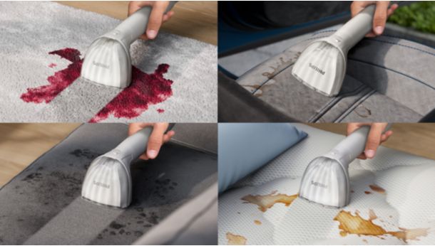 uklanja mrlje s raznih vrsta mekih površina.