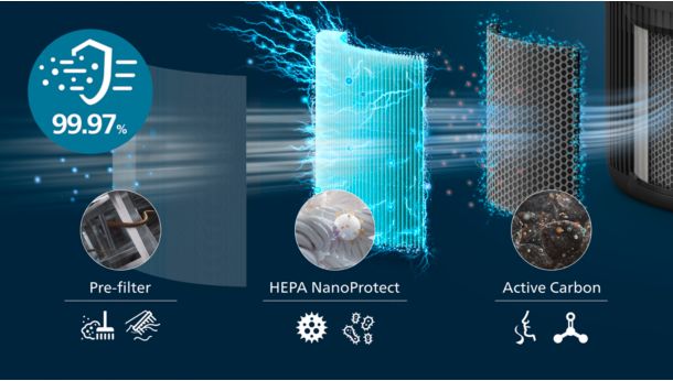 3-slojna filtracija napravljena od predfiltera, HEPA NanoProtect i Active